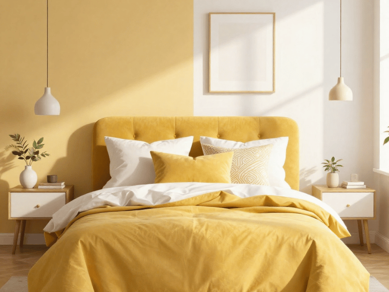 Mustard yellow adds a cosy and comforting feel to bedrooms without being too bright. When used with soft lighting and neutral tones, it helps create a relaxed and inviting space.