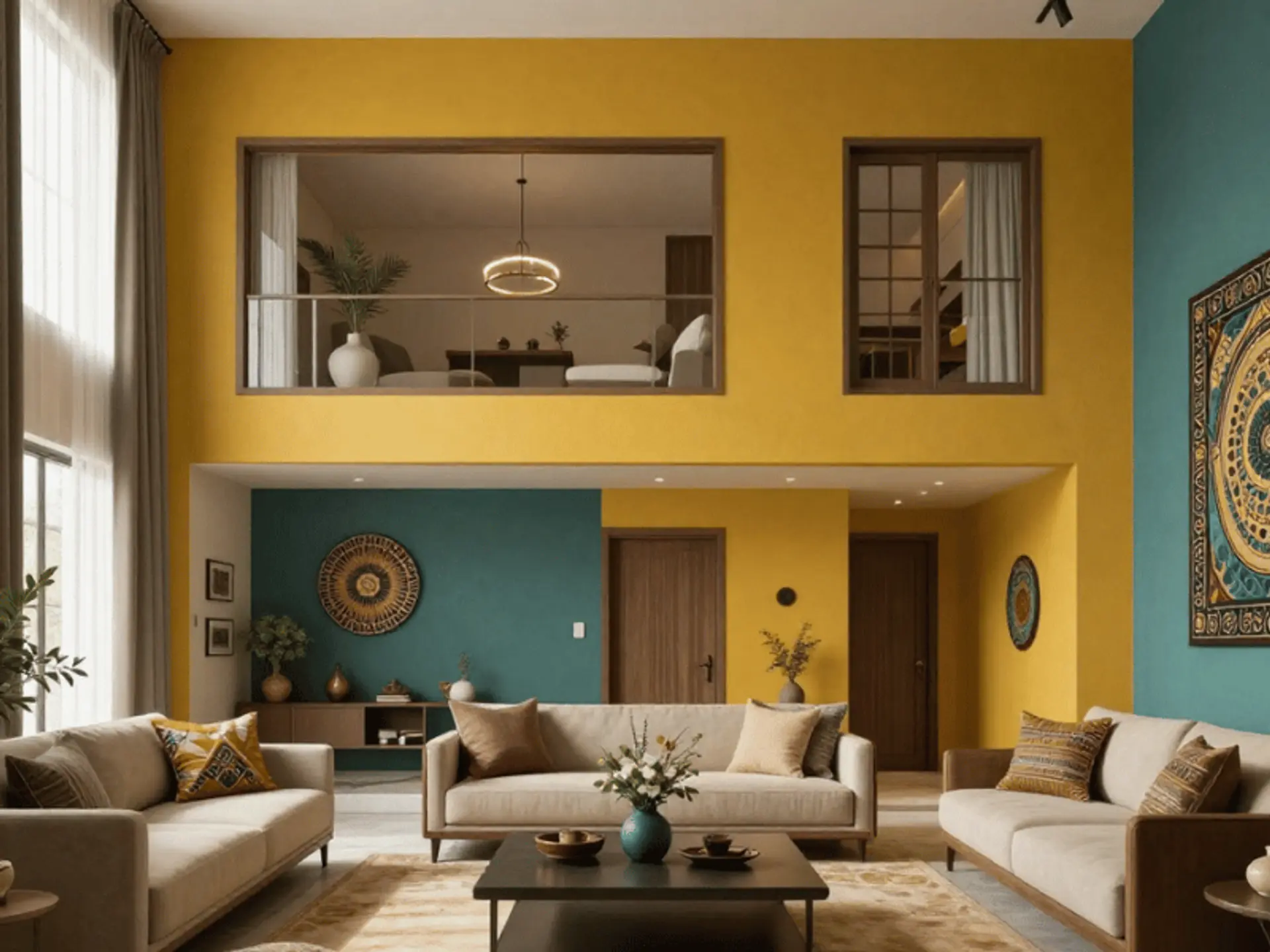 Mustard yellow shades for wall can be used in different ways across various rooms in the house. Instead of painting every wall in this bold shade, thoughtful placement can help highlight its warmth while maintaining balance in the interior design.