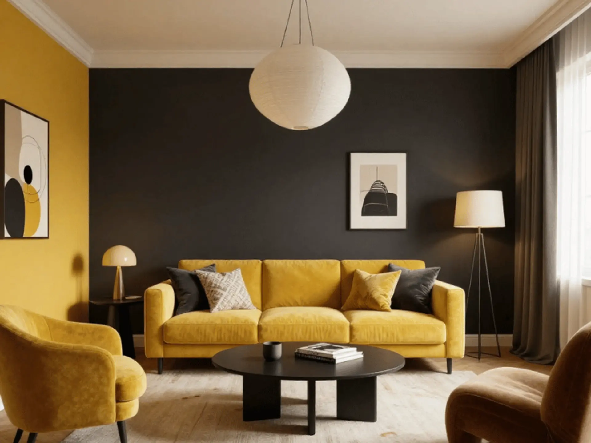 - Existing Furniture: Choose combinations that complement your furniture. Some colours that go with mustard yellow include grey, black, and metallic finishes.